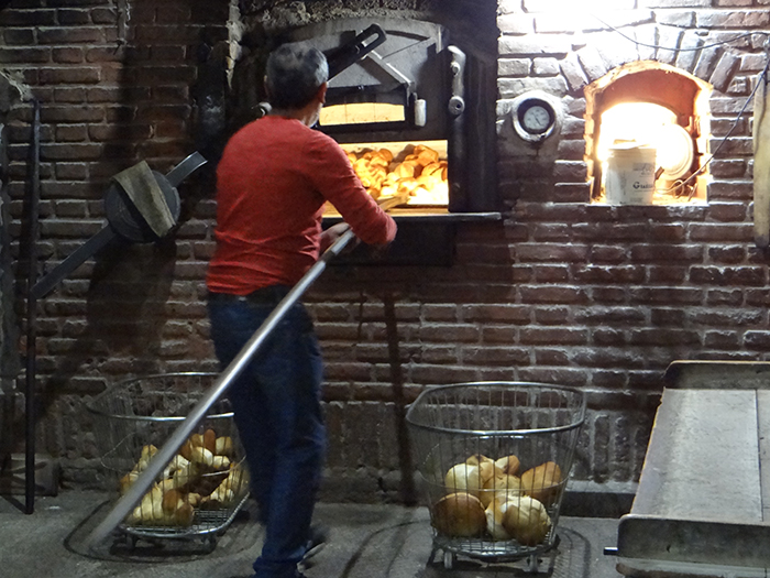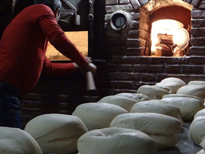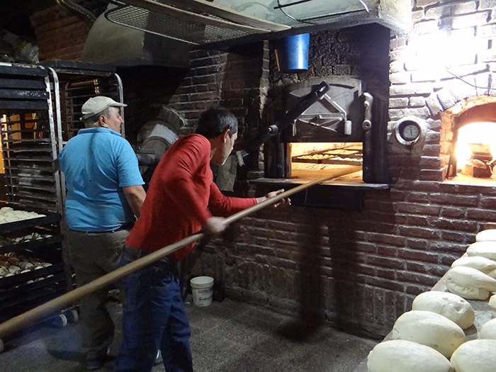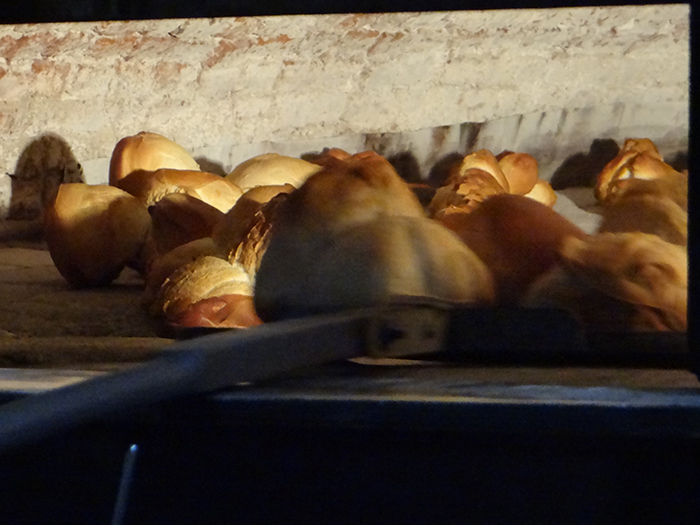 Lo bueno, rico o con valor lleva su tiempo de elaboración, al igual que un buen asado demanda 4 horas o un gran árbol más de 20 años crecer, lo mismo pasa con el pan, más precisamente con la galleta de campo. Son las 3:50 de la mañana de un frió jueves de julio, este invierno llego sin anestesia para hacernos saber que no podemos estar de remera y en patas dentro de nuestra casa. Para saber cómo se hace el pan, bien vale la pena madrugar.Afuera todavía es de noche y lo será por un largo tiempo más, llegamos a la puerta de la panadería Yorio en Av España y Av Scully, todavía está cerrada al público. Golpeamos la puerta del costado, la misma que más jóvenes empujábamos un sábado a la madrugada por unas facturas.Juan, ayudante del panadero, abrió la puerta y el calor nos abraza, entramos y ya el sueño quedó atrás. Dentro del horno eléctrico giran las bandejas de bizcochos y tortitas negras, el olor, o perfume, está en todo el lugar.“Pasen pasen Oscar todavía no llego, él viene a las cuatro y arrancamos con el horneado del pan”, cuenta Juan mientras destapa las tablas con los bollos de pan crudo listos para hornear. Mientras esperamos nos cuenta que la galleta solo se puede hacer en horno abovedado, el clásico horno de panadería antigua, por el tipo y cantidad de calor.La Cuadra, como se llama el sector de trabajo en la panadería, donde está el horno en invierno es un lugar muy cálido, con unos 25° y en verano pasa a ser infernal con mañanas de 60°. El horno a leña, que aún conservan junto a otras tres panadearías de la ciudad, está encendido desde las 18 horas del día anterior.A la hora señalada llegó el panadero, Oscar. Lo primero que hizo fue poner la pava en el fuego, prendió un cigarrillo que dejó abandonado en la punta de la mesada, agarró un trapo húmedo y lo llevo al horno. Con la ayuda de una pala de panadería lo paso por todo el piso de cerámicas refractarias del horno, en el contacto el agua del trapo se evaporó.“Así limpio el horno de la ceniza que pudo haber caído cuando lo prendí ayer a la tarde”, explicó Oscar ya con el mate en la mano. De contextura chica se lo nota muy activo, se tomó un mate y rápidamente cebo otro que nos pasó a nosotros, el que toma ceba el siguiente.“Desde el 84 que trabajo acá, cuando se abrió esta panadería yo empecé”, contó mientras pone en la puerta del horno dos palas de madera con un ancho de 15 cm donde Juan empieza a poner los bollos de galleta prolijamente uno detrás del otro. Oscar levanta la puerta guillotina del horno, les hacer un pequeño corte al costado a cada bollo con una hoja de gillette que esconde entre sus dedos y mete la pala hasta el fondo del horno bajando los bollos. Repiten esto hasta terminar los tres tablones de masa, unas 60 futuras galletas de campo.La coordinación es admirable entre los dos compañeros panaderos, unos abastece las palas de masa y apila los tablones que se van vaciando en el montacargas, mientras el otro coloca los panes crudos en el horno de izquierda a derecha y de atrás hacia adelante ordenadamente. En menos de 20´ ya están cocidos”, aseguró Oscar que prende su segundo cigarrillo le da una pitada y lo coloca en el borde de la puerta del horno y se tomó un mate lavado.“Para mi levantarme a esta hora no es problema, porque hago lo que me gusta”, cuenta Oscar y reflexionó “todas las personas nacieron para algo, solo tienen que buscarlo”. Son las 5 de la mañana y en la Cuadra está lleno de canastos de mimbre con pan horneado. Entre esos canastos esta la galleta de campo, florecida como le dicen ellos gracias al corte de la gillette y al calor constante de 240º del horno.Oscar Yorio llega para abrir la panadería y ordenar el reparto, nos pregunta por nuestra nota y nos agradece con el mejor souvenir que podes llevarte de una panadería, una galleta de campo recién horneada. Afuera todavía es de noche y debatimos como vamos a comer eso que nos llevó a despertarnos, ahora felizmente, a las 3:50 un jueves frio de invierno.