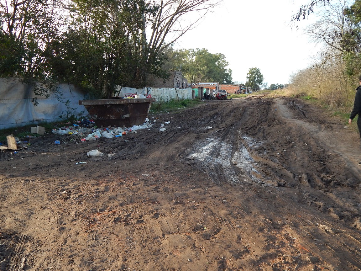 Un vecino de San Andrés de Giles se levanta a las seis de la mañana para ir a trabajar. El frio que hace afuera es el mismo que se siente dentro de su casa. El gas natural no llega donde vive, el agua corriente tampoco. Abre la puerta, y la oscuridad de la mañana lo abraza. No hay ninguna luz en su calle., que es prácticamente de barro. Cada vez que llueve tarda una semana en secarse y resulta imposible transitarla. Ni para salir, ni para volver.Esta rutina diaria la comparten todos los vecinos del barrio “El Esfuerzo”. La entrada principal se corona con un conteiner desbordante de basura, que según los habitantes del lugar, es usado por comercios de la zona que tiran sus desechos a metros de sus casas.En 2010, a través del Programa Nacional del Instituto de la Vivienda, se funda el Barrio de Autoconstrucción, denominado por ellos mismo como “El Esfuerzo”, por el sacrificio que les llevó levantar sus casas con sus propias manos. Los terrenos fueron donados por Vialidad Nacional al Municipio. En un principio se realizaron once loteos para recibir, en su mayoría, a familias que fueron desalojadas de la estación de trenes. Tiempo más tarde el resto del predio fue ocupado informalmente. Según los vecinos, la municipalidad les dio el visto bueno para instalarse siempre y cuando respetaron la planificación oficial pensada para el lugar. Esta aprobación no significaba ningún tipo de ayuda, ni en los materiales, ni en la construcción.A pesar de la legalidad del barrio, éste carece de la instalación de agua corriente, luz eléctrica y desagüe pluvial, lo que además provoca dificultades para el secado y la circulación de las calles. Las vecinas del barrio que nos recibieron ilustraron la complicada situación con el ejemplo de una familiar embarazada. “Mi cuñada tiene parto programado el miércoles y no sabemos cómo va a hacer. Para algunos controles la tuvimos que ayudar a salir entre las dos “, menciona.Sin encontrar respuestas se siguen preguntando qué pueden hacer los días que se descompone alguien o se enferma algún nene. “Estás a la intemperie”, afirman. Cuando llueve no pueden llevar los chicos al colegio porque llegarían todos embarrados. “Los asistentes sociales nos juzgan y creen que es para quedarnos a dormir pero no se puede transitar ni siquiera con un auto”, explican. Además aclaran que por la mañana, con roció, llovizna y oscuridad total no se secan las calles. “Los chicos que trabajan a las 6 de la mañana se tienen que ir sin luz por el barro, con o sin botas”, concluyen.La ausencia de zanjas agrega otro problema a la situación de lluvia: “Si hacen dos cuadras para dentro del barrio sigue habiendo más agua adentro de las casas que en las calles”. Son pocas las que están altas, las demás se inundan con frecuencia. “La mayoría de la gente pierde lo poco que tiene, los muebles se arruinan”. Como ejemplo, relataron la inundación que tiempo atrás sufrieron varios sectores de la ciudad: “A nosotros nos dejaron sin calle para que corra el agua estancada del Barrio Gracias a Dios”. Mediante la excavación de “una zanja tremenda” lograron trasladar el problema a El Esfuerzo. “Cuando les preguntamos cómo íbamos a salir nos ofrecieron una madera sobre el zanjón de la ruta para que pase la moto”, recuerda indignada.Algunos vecinos extraen agua de pozo, otros tienen que abastecerse con una presión mínima que viaja cuadras enteras para llegar a sus casas. “En verano es una odisea tener agua y nos turnábamos para poder usarla”.Actualmente esperan la instalación oficial de luz eléctrica. Los cables de las instalaciones provisorias están al alcance de la mano, significando un gran peligro para los habitantes. Sin embargo el municipio no establecerá el tendido eléctrico hasta que se desocupen las cuatro casas construidas sobre Rawson para poder abrir la calle. “Nos dicen que hasta que ellos no se vayan no nos van a bajar la luz. Nosotros no podemos hacer nada, son vecinos con necesidades, no nos vamos a poner en su contra”, aclaran. Los planos municipales incluyen una calle que atraviese y recorra El Esfuerzo y el ex-barrio tomado.
