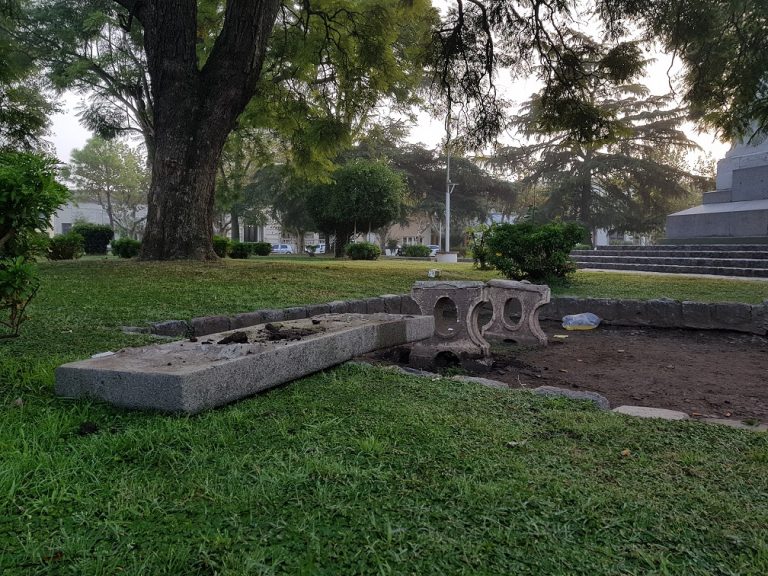 Rompen un histórico banco de la Plaza San Martín