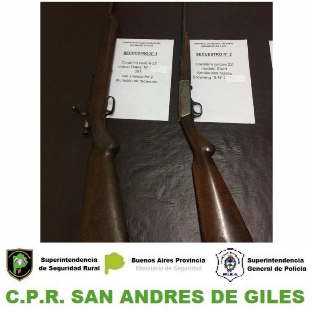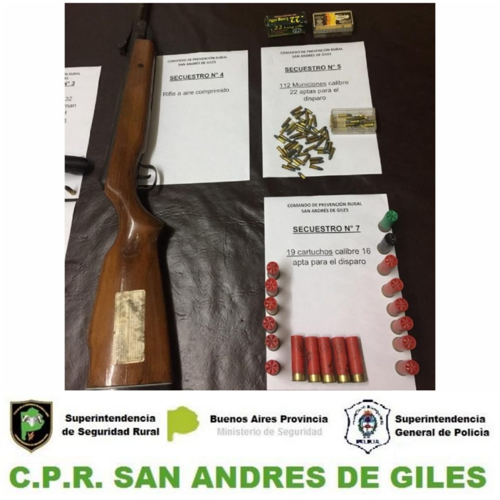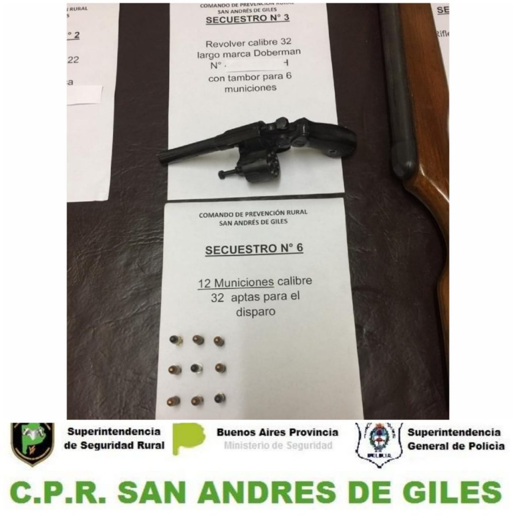 El Comando de Prevención Rural (CPR), a cargo del subcomisario Gustavo Ojeda, allanó en la tarde de ayer, miércoles 12, una vivienda rural. La denuncia realizada por amenazas terminó con la incautación de diversas armas no registradas.Según informó la fuerza rural el procedimiento se realizó en la RN. 7 Km. 108, con la intervención de la UFI N° 5 y el Juzgado de Gtias. N°3. En el lugar se secuestraron dos carabinas calibre 22 –una de ellas con silenciador-, un revólver calibre 32, un rifle de aire comprimido, 112 municiones calibre 22, 13 municiones calibre 32 y 19 cartuchos calibre 16.Por el caso quedó imputado un vecino aunque “por el momento no se tomó temperamento alguno para con él” destacaron oficialmente a este medio. Esta semana también se habían secuestrado armas en un campo cercano.
