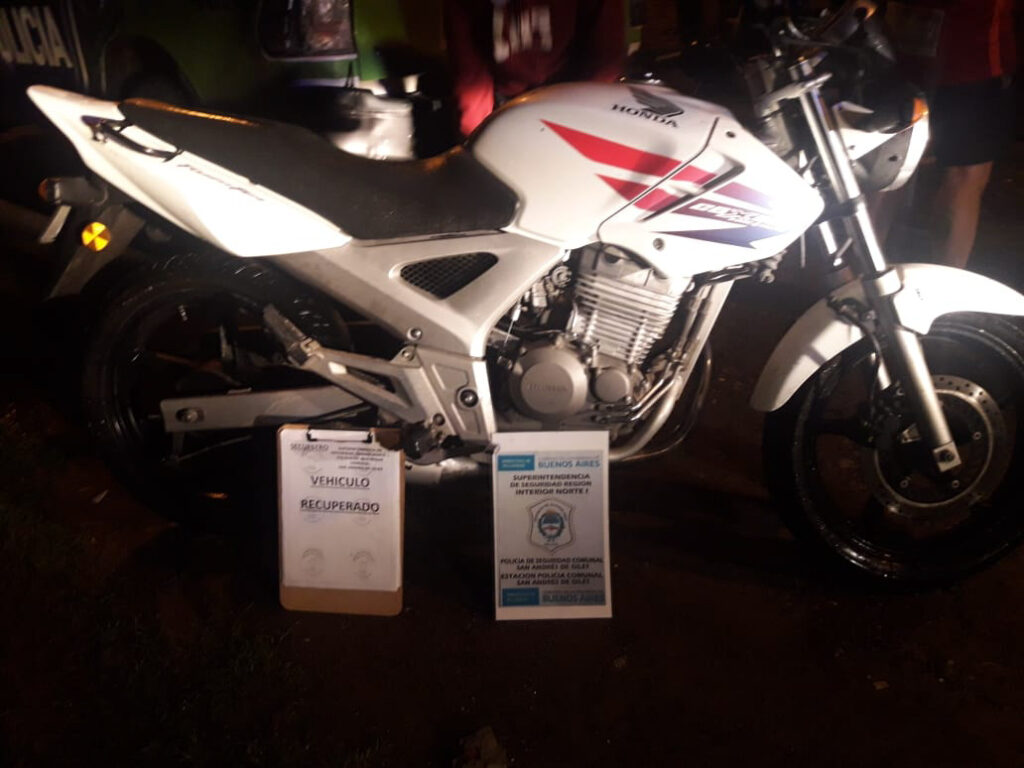 La Policía local tuvo actividad en la madrugada de hoy lunes. La fuerza recibió denuncias de robos de motocicletas en la planta urbana casi en simultaneo. Una actividad poco habitual en nuestro partido.Según revela el informe de la Comisaría, una moto marca Honda modelo Twister 250 fue sustraída de un domicilio ubicado en Hidalgo y 9 de julio. Por su parte otra marca Crono modelo Clasic 110 fue robada de la intersección de calles Sarmiento y 501.La Policía diagramó un importante operativo para en pocas horas logró recuperar ambos vehículos y capturar a los bandidos. Tres menores de edad oriundos de Carmen de Areco fueron los autores de los hechos.Los sujetos fueron puestos a disposición del servicio de menores quedando imputados por Hurto de Motovehículo.