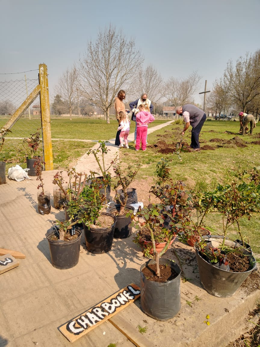 La convocatoria, organizada por la referente municipal Anyi Carballo y un grupo de ex residentes de la localidad aficionados a la jardinería, movilizó a los vecinos y cada uno de ellos se acercó a plantar un rosal que lleva el nombre de las familias que integran la comunidad de la querida localidad.