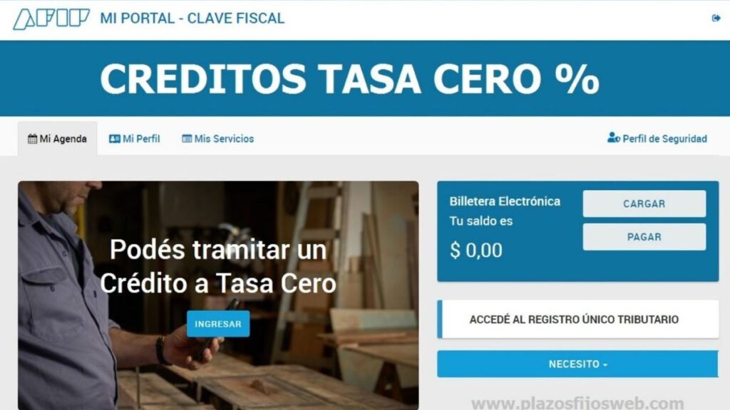 Para pedir el crédito, habrá que ingresar a la web https://www.afip.gob.ar/ con la clave fiscal. Luego, se deberá elegir la opción “Créditos Tasa Cero” y seleccionar la entidad financiera donde fue emitida la tarjeta de crédito que será utilizada para operar.