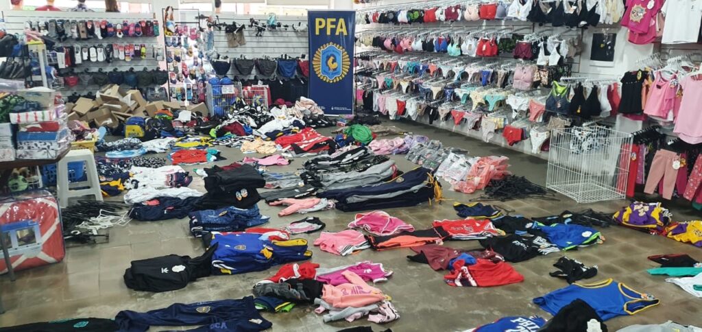 La D.U.O.F. MERCEDES de la PFA, procedió a dar cumplimiento al mandato Judicial, el cual ordenaba el allanamiento de dichos comercios, logrando incautar más de 1500 prendas de vestir y más de 160 pares de calzados con diferentes inscripciones, dicha mercadería tiene un valor aproximado de mercado de $8.300.000 pesos.