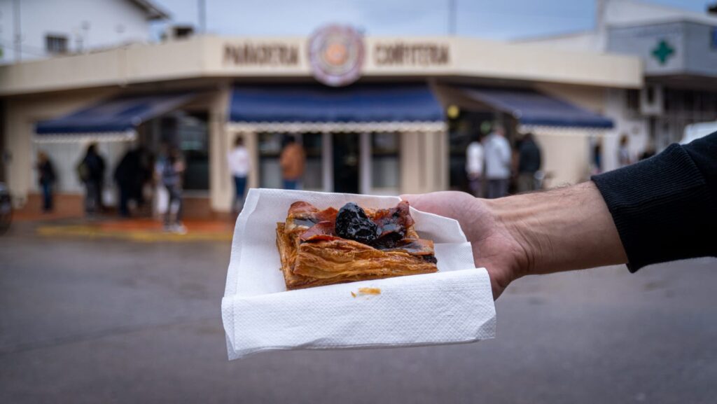 Se trata de una masa de hojaldre rectangular, que busca emular el trazado de nuestro partido. La factura cuenta con panceta ahumada, en honor a la producción de cerdos característica de nuestra región, colocadas en formas de cruz en en homenaje a San Andrés de Apóstol. Además, tiene una ciruela, dado que es un fruto que abunda en la zona.