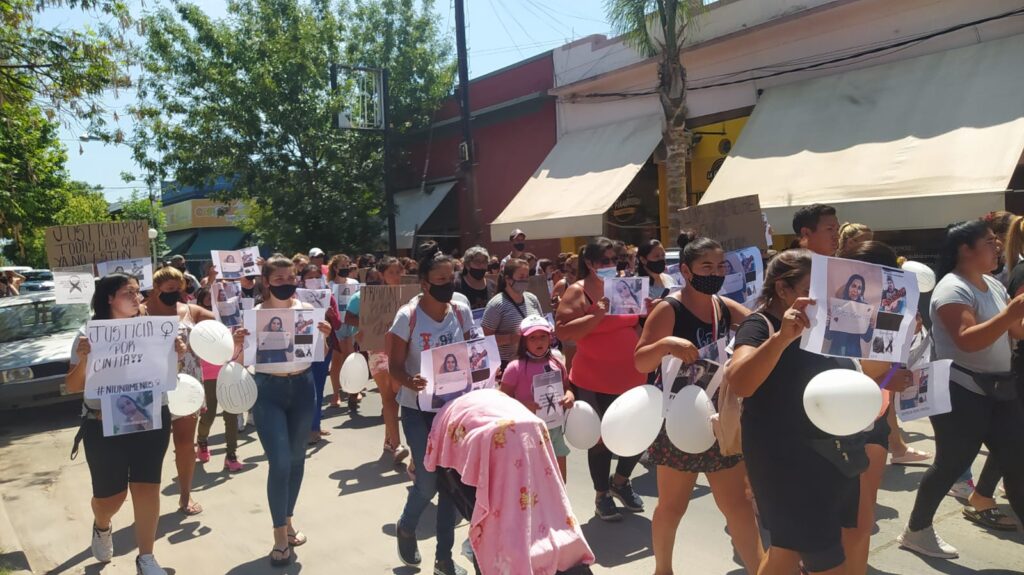 Esta mañana la comunidad acompañó a la familia de Cintia Cerrudo en su pedido de justicia. La joven (32) fue asesinada brutalmente por su ex-pareja Luis Goyeneche Giunta (41) el sábado a la mañana. Hoy después del entierro, y ya cerca del mediodía, marcharon desde la plaza San Martín hasta la comisaría. El calor fue agobiante y la tristeza también. Mujeres, hombres y niños caminaron por las calles del centro con carteles y aplausos al grito de “Justicia”.