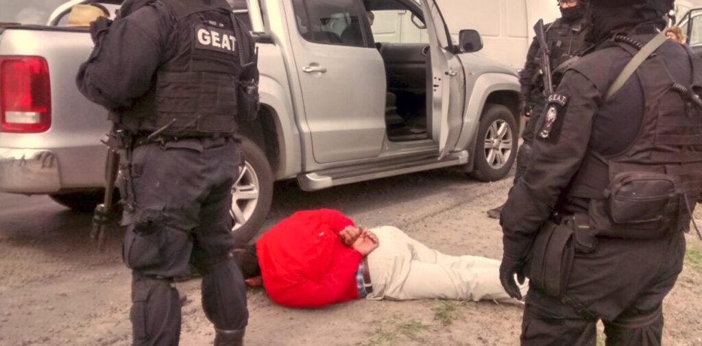 Mientras el acompañante buscaba en la consola del vehículo dinero para pagar el peaje, una Traffic frenó a toda velocidad al lado del coche, y de la parte de atrás bajaron dos miembros del Grupo Especial de Asalto Táctico (GEAT), a los que enseguida se le sumaron otros ocho. “¡AGACHÁ LA CABEZA! ¡POLICÍA! ¡LAS MANOS EN LA CABEZA!” gritaron los efectivos mientras apuntaban con sus fusiles.