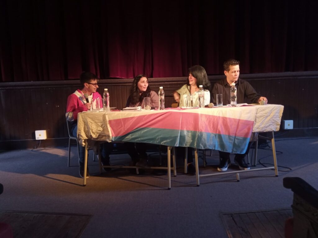 En el Centro de Cultura compartió mesa con Matías Veneziani -también es parte de la asociación “Infancias Libres”- y con Federico Civerra, referente local del colectivo LGBTIQ+. Liliana León, coordinadora de diversidad local, estuvo presente y agradeció su visita, haciendo hincapié en la importancia de visibilizar y acompañar a las niñeces trans de nuestra ciudad.