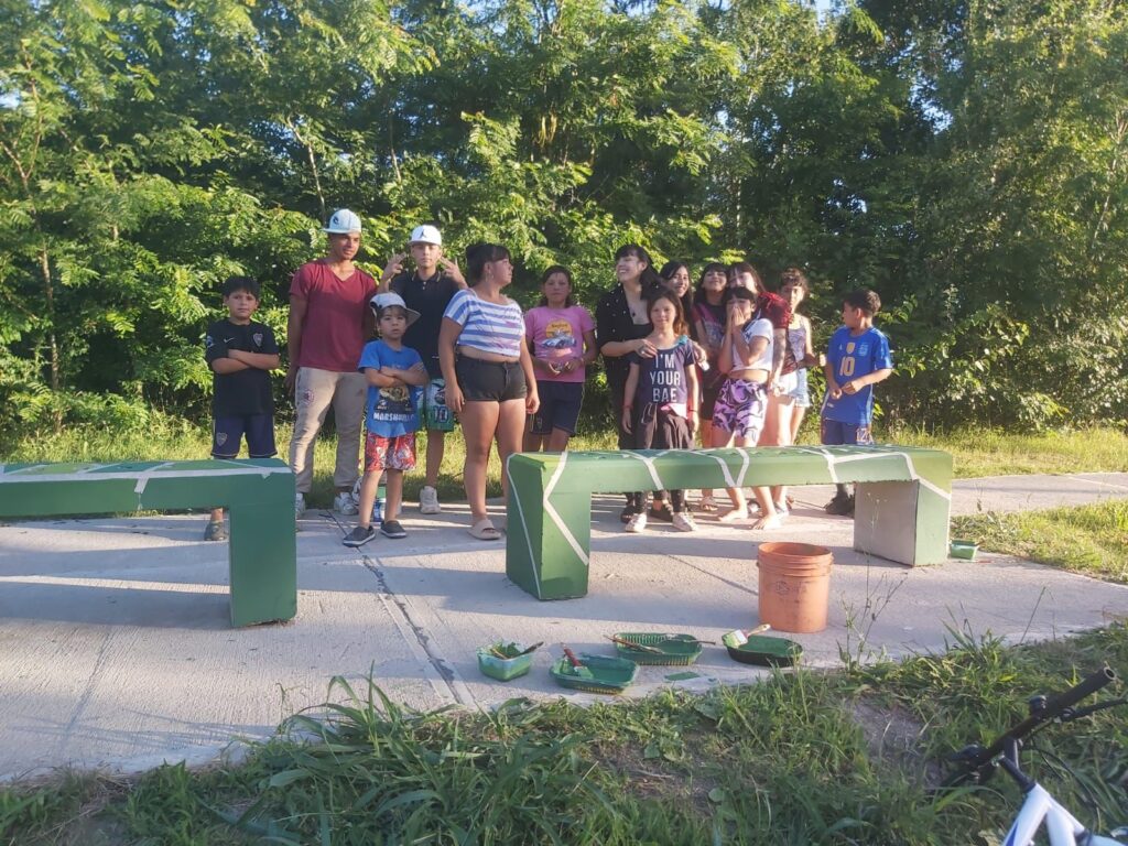 Entre los logros destacados, se encuentran intervenciones artísticas en la Plaza Rawson y en los barrios La Flor, Bicentenario y Cucullú. Los chicos pintan bancos y murales que no solo embellecen el entorno, sino que fomentan el sentido de pertenencia y el cuidado comunitario de los jóvenes. Aprenden a cuidar lo que ellos mismos construyen.