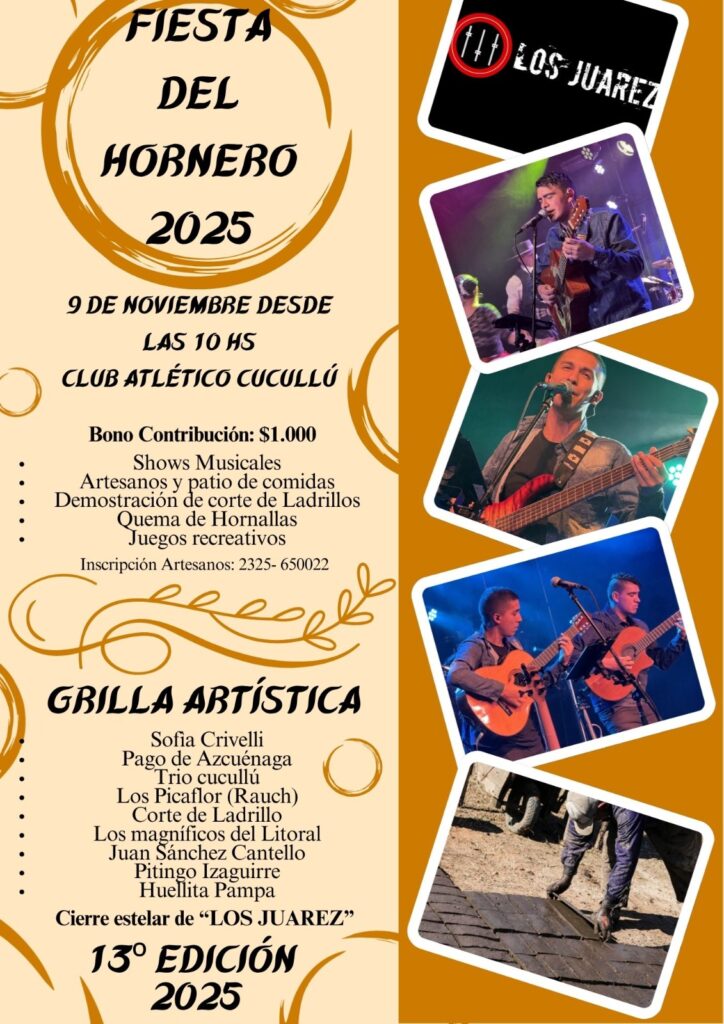 Este domingo 9 de noviembre, desde las 10 de la mañana, el Club Atlético Cucullú será escenario de una nueva edición de la Fiesta del Hornero, una de las celebraciones más esperadas por la comunidad local y de toda la región.