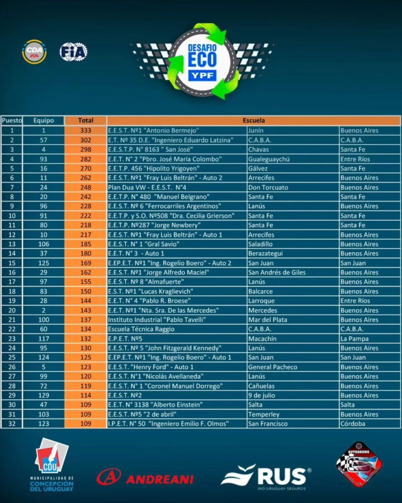 El domingo fue la carrera con 124 autos en pista, terminando 17º la EEST Nº 1 “Jorge Alfredo Maciel” de Giles logrando dar 17 vueltas, quedando a dos vueltas del ganador, la EEST Nº 1 Antonio Bermejo de Junín.