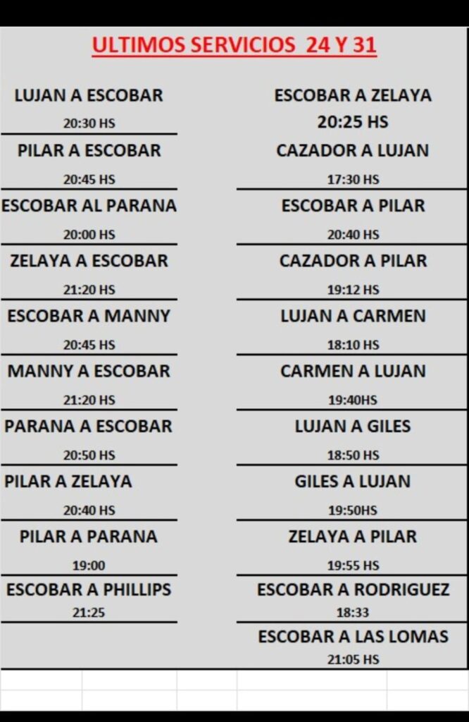 Metropol y Masterbus difundieron los horarios de los últimos servicios en estas fiestas