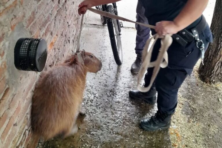 Otra vez un carpincho sorprende caminando por las calles de Giles