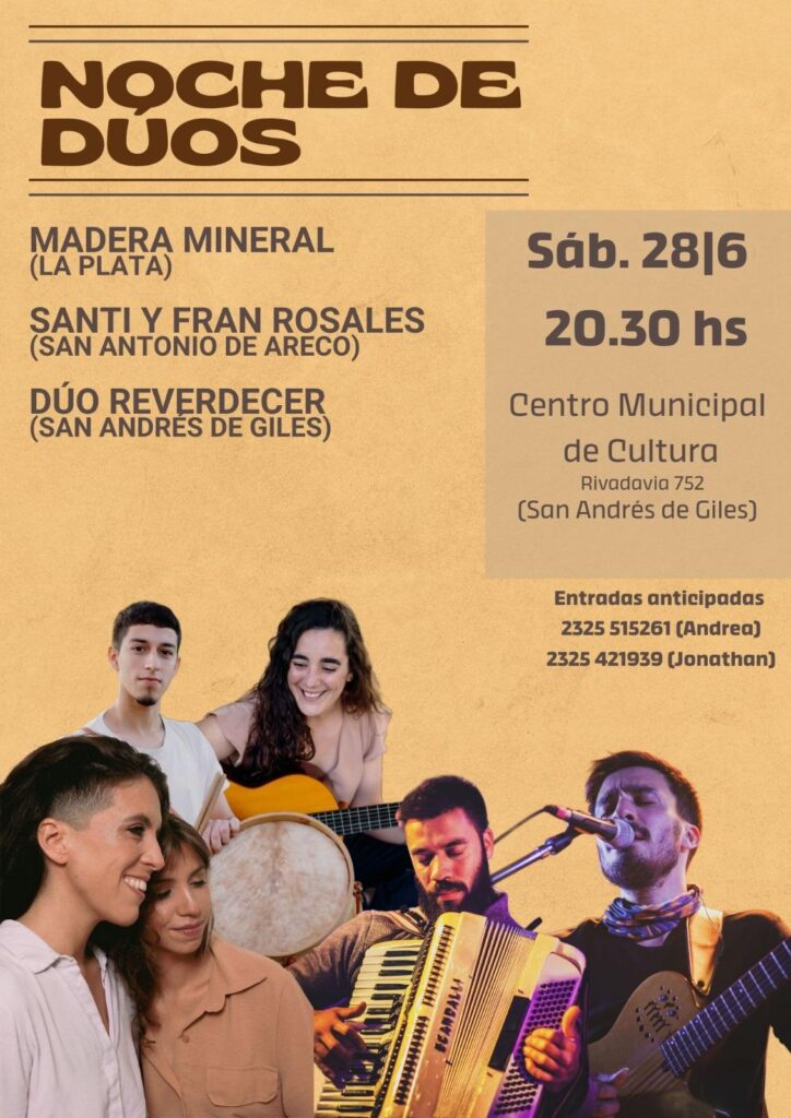 El Centro de Cultura se prepara para un espectáculo único de música folklórica titulado “Noche de Dúos”, que reunirá a destacados artistas del género en un evento especial. La velada contará con la participación del Dúo Reverdecer, de San Andrés de Giles, junto a otros talentosos invitados. La fecha es el sábado 28 de junio. Las entradas ya están a la venta.