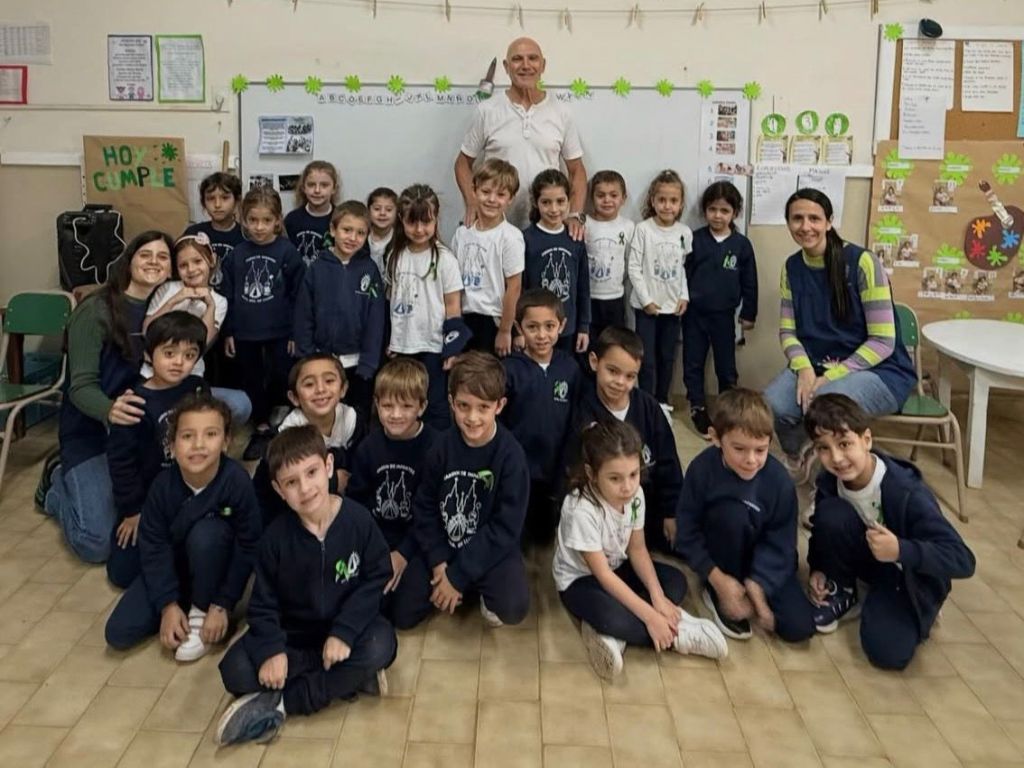 Emocionante encuentro: Marcelo compartió su historia con los más pequeños, que trabajaron dentro del aula la Guerra de Malvinas.