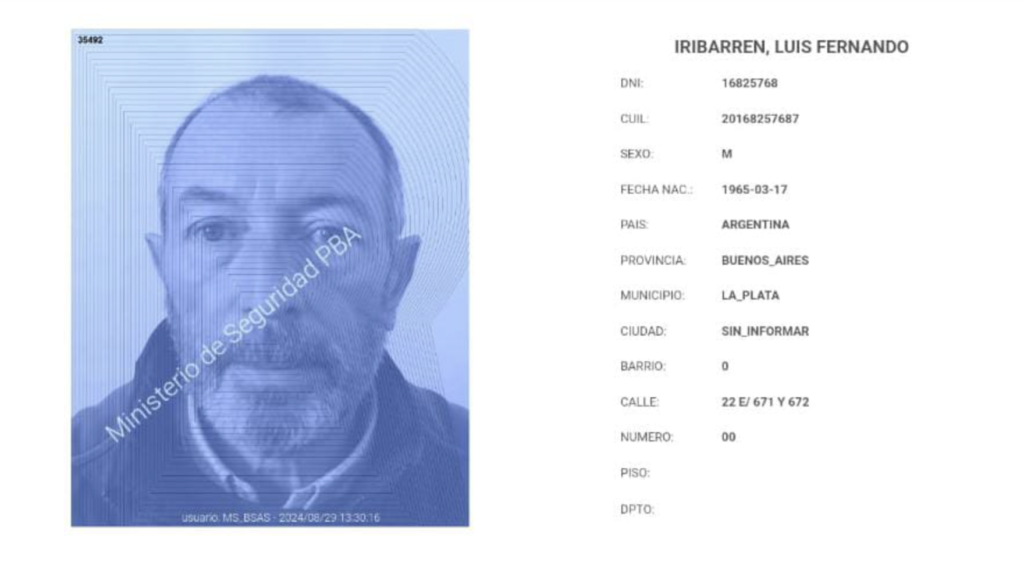 Mañana miércoles se cumplirá una semana de la fuga de Luis Fernando Iribarren, el múltiple asesino gilense que fue encarcelado en 1995. El oscuro sujeto aprovechó una salida transitoria -estudiaba en la Facultad de Ciencias Económicas de La Plata- para escapar.