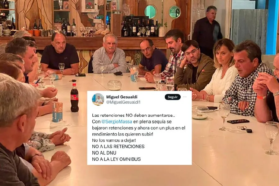 Por su parte, Miguel Gesualdi se expresó en sus redes sociales luego de la reunión: “Las retenciones no deben aumentarse. Con Sergio Massa en plena sequía se bajaron retenciones y ahora con un plus en el rendimiento las quieren subir. ¡No los vamos a dejar! No a las retenciones, no al DNU, no a la Ley Omnibus”.
