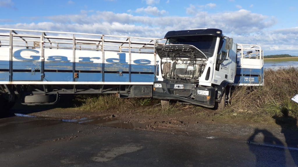 Camión jaula se despistó en Solís