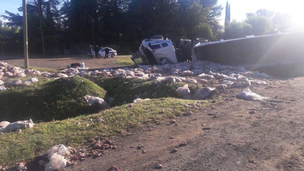 El camión Scania se llevó la peor parte. Tras impactar con el auto, el transporte terminó volcando en una cuneta perdiendo así toda su carga –menudencias– sobre la cinta asfáltica. El camionero identificado como Joaquín Ricardo Medina (60), oriundo de Arrecifes, tuvo que ser liberado de su cabina por los Bomberos para luego ser trasladado, con heridas leves, al Hospital Municipal.