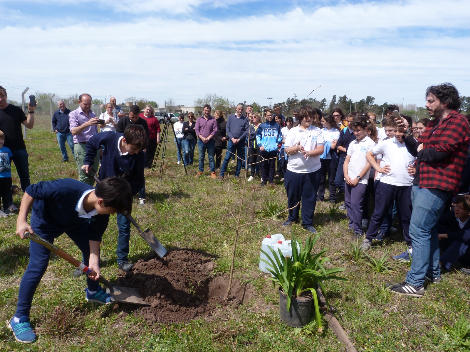 En lugar de una piedra fundamental quisieron plantar un árbol por las connotaciones que quieren darle al futuro establecimiento, haciéndolo sustentable, aprovechando el sol, el agua de lluvia y la tierra.