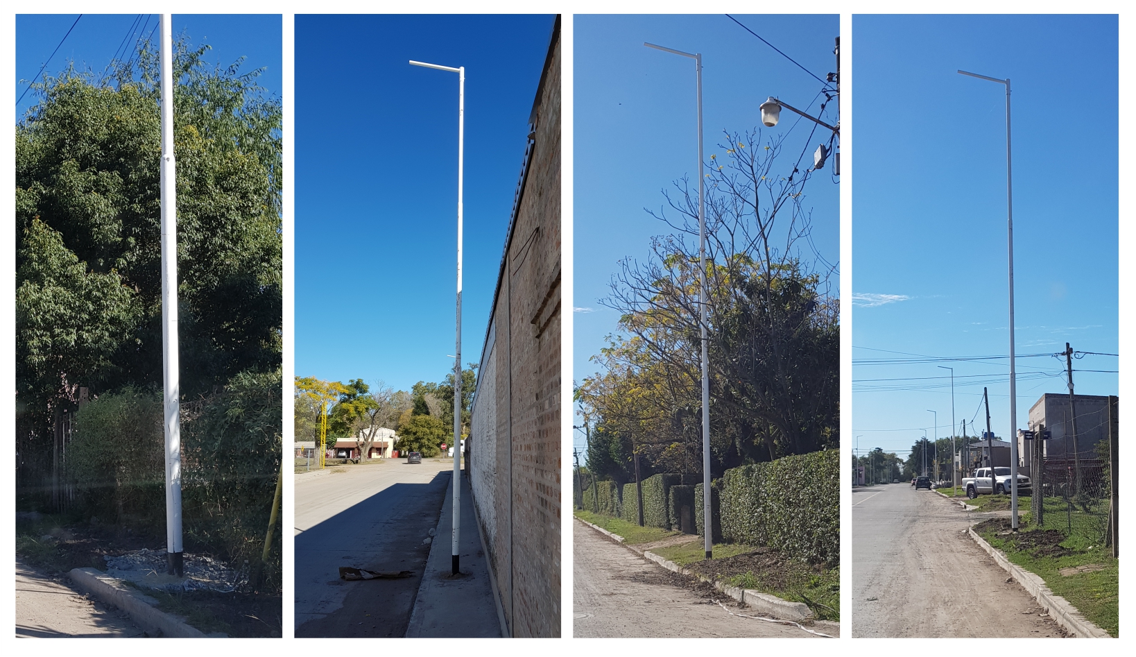 Recorriendo la imponente obra, ya se pueden observar las columnas que contendrán la iluminaria led. Lo insólito, es la situación que se repite en por lo menos cinco sectores de la traza: las columnas ocupan el centro de las veredas imposibilitando el normal paso de los peatones.