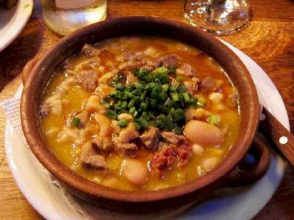 Cortar la cebolla en brunoise junto con el ajo y agregar a las carnes. Bajar el fuego a mínimo y rehogar. Agregar agua hasta cubrir y cocinar a fuego bajo durante 30 minutos. Incorporar el maíz y las alubias y cocinar a fuego bajo por 1:30 hs. En este punto, agregar la calabaza cortada en cubos y el laurel, y cocinar a fuego bajo durante 30 minutos más. Condimentar con especias secas y poner a punto de sal.