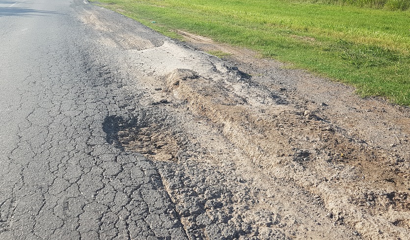 A pesar de la obra, el camino no resistió el paso de los vehículos de gran porte. En poco tiempo la cinta asfáltica comenzó a ceder hacia los costados, generando importantes huellones. Hoy ya se pueden notar los primeros pozos, principalmente llegando a la intersección con RP. 41.