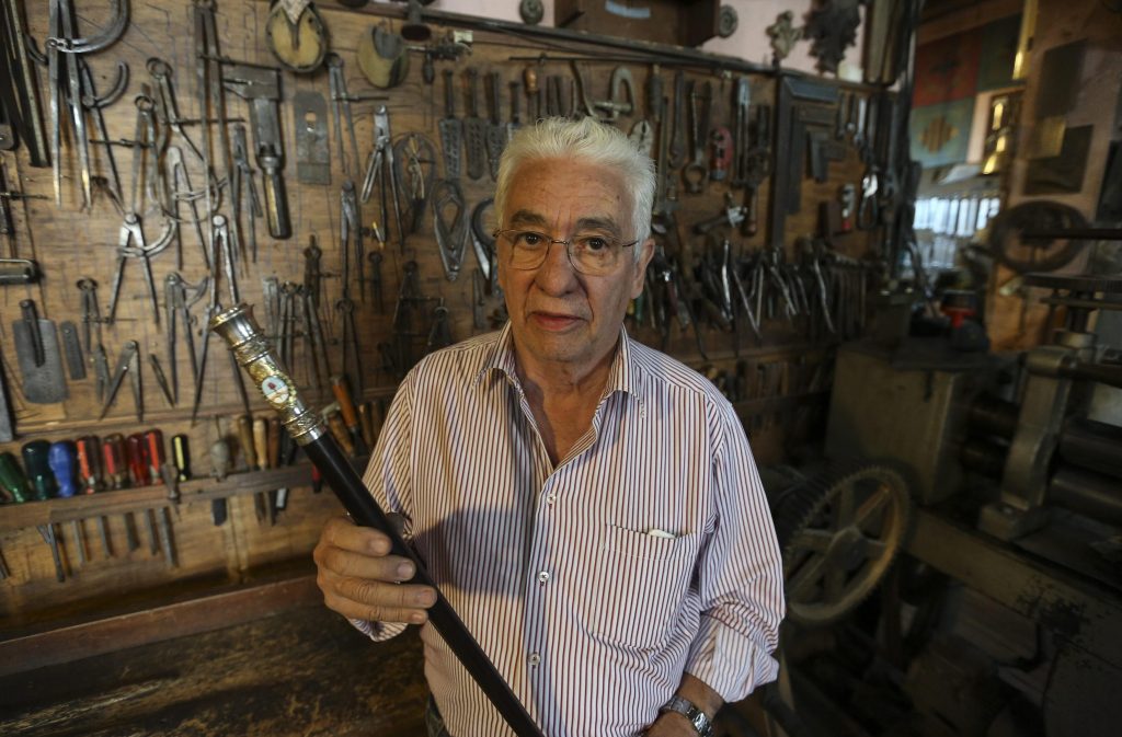 El primer taller de la familia Pallarols data del año 1750. “Con el bastón recorrimos todo el país, hasta estuvimos en la Antártida. Y esos viajes también me sirven para recordar aquellos por trabajo que hacía con mi padre. Por ejemplo, ahora volví a lugares como Sampacho, en Córdoba, o Coronel Moldes, en Salta, y me encontré con trabajos hechos por él”.