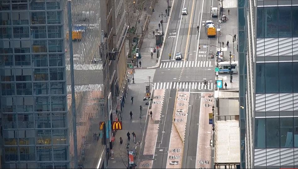A lo lejos se ve una persona caminando rápidamente por la Gran Vía, en Madrid; pasa un auto, otro. Y nada más, la soledad se apodera de una de las avenidas más transitadas de Madrid. La Fontana di Trevi, en Roma, luce resplandeciente, pero sin gente y sin monedas, un placer poder apreciarla así.