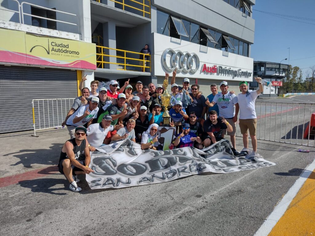Ya pasadas las 20 horas, el Tártara Competición llegó a Giles acompañado de la Barra de la Sodería para celebrar la corona en plaza San Martín. Una caravana de autos saludó a los campeones de nuestra ciudad. Claro, porque además de Nelson Costanzo otro gilense tiene importante mérito en este titulo: el vecino Enrique Pellegrini es motorista en la estructura de Zárate de Juanjo y Nacho Tártara que le dio la herramienta a Nelson para campeonar.